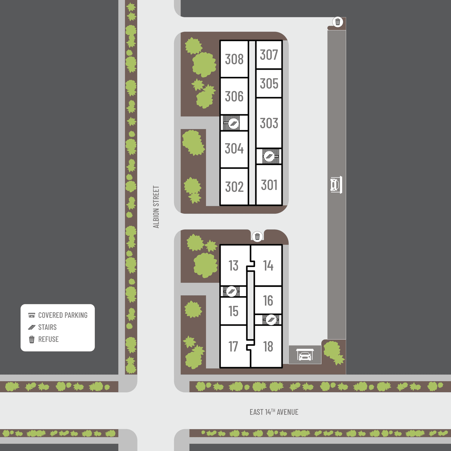 Select a floor plan or bedroom count to view those units on the overhead view on the site map. If you need assistance finding a unit in a specific location please call us at 720-780-3143 TTY: 711.
